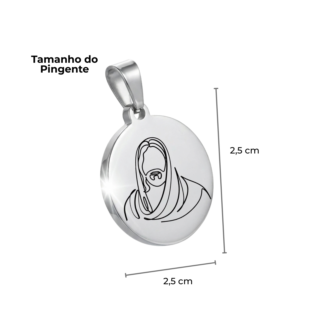 Este pingente não tem fotogravação, apenas a gravação já pronta de Jesus Cristo + Frase personalizada. NÃO É POSSÍVEL PERSONALIZAR ESTE PINGENTE COM FOTOS, APENAS COM FRASES.