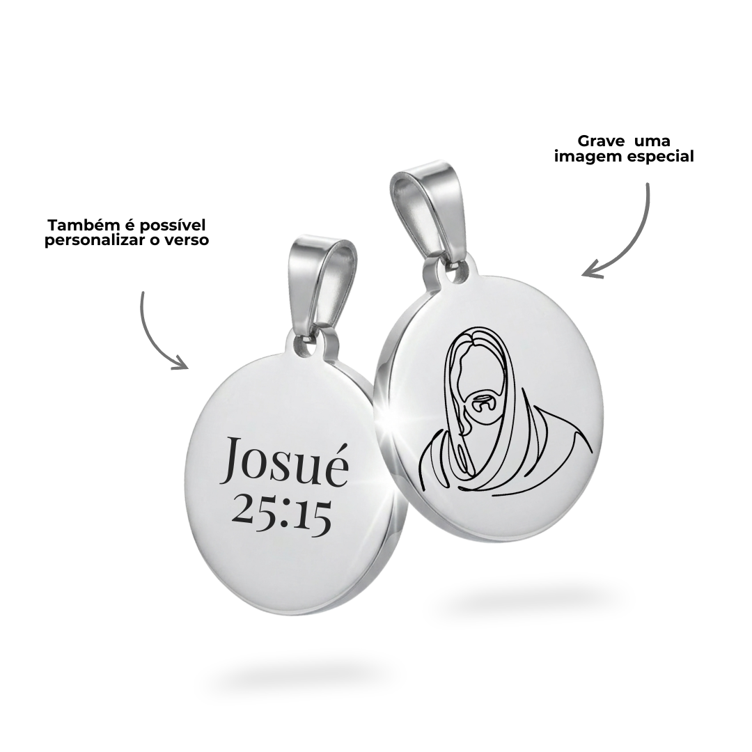 Este pingente não tem fotogravação, apenas a gravação já pronta de Jesus Cristo + Frase personalizada.  NÃO É POSSÍVEL PERSONALIZAR ESTE PINGENTE COM FOTOS, APENAS COM FRASES.