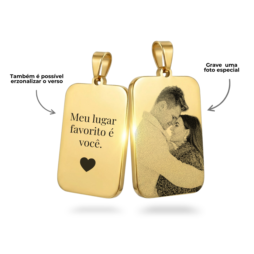 Colar Personalizado Retangular Grande Dourado