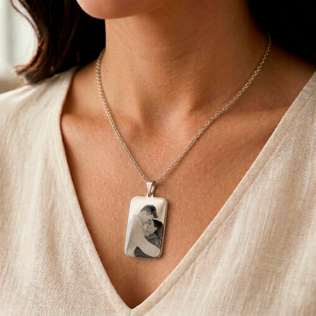 Um instante, uma lembrança que merece ser eternizada. Este colar transforma suas fotos em pequenas obras de afeto, guardadas junto ao coração. Mais do que um acessório, ela é memória viva, um detalhe que acompanha cada momento especial